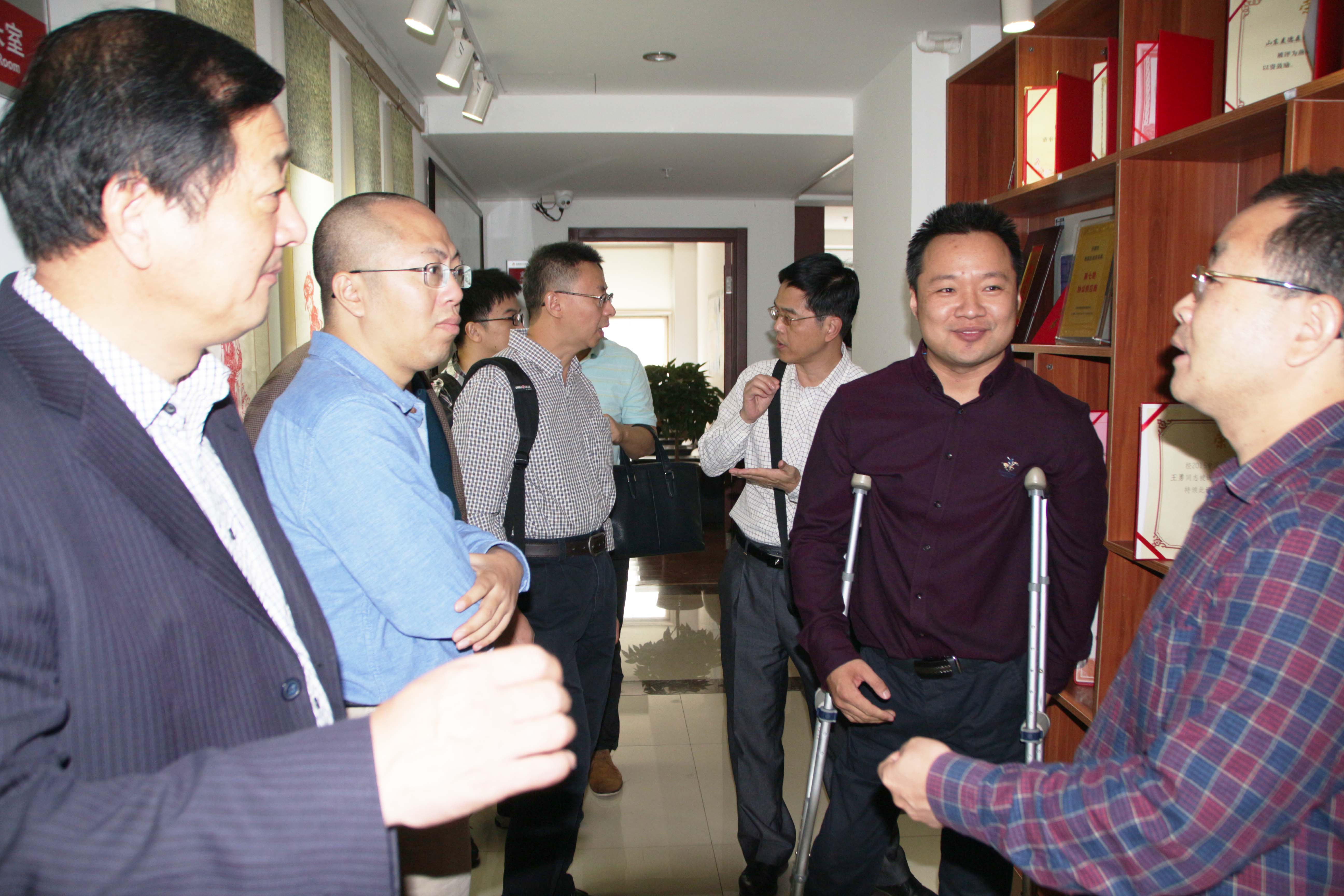 来到公司总部后,广州市残联代表团首先被公司门口 “济南市残疾人文学艺术界联合会”“济南市残疾人文化创业就业示范基地”“济南市肢体残疾人活动基地” 的几块牌匾吸引住了。驻足观望并进行了一番基本了解之后,王勇董事长带着他们来到了我集团的励志文化长廊进行参观并指导工作。在交流学习的过程中,双方互相分享残疾人文化产业的多种发展方式和展示形式,都获益匪浅,纷纷表示将继续用满腔的热情不遗余力地为残疾人文化产业的进步贡献出力量。