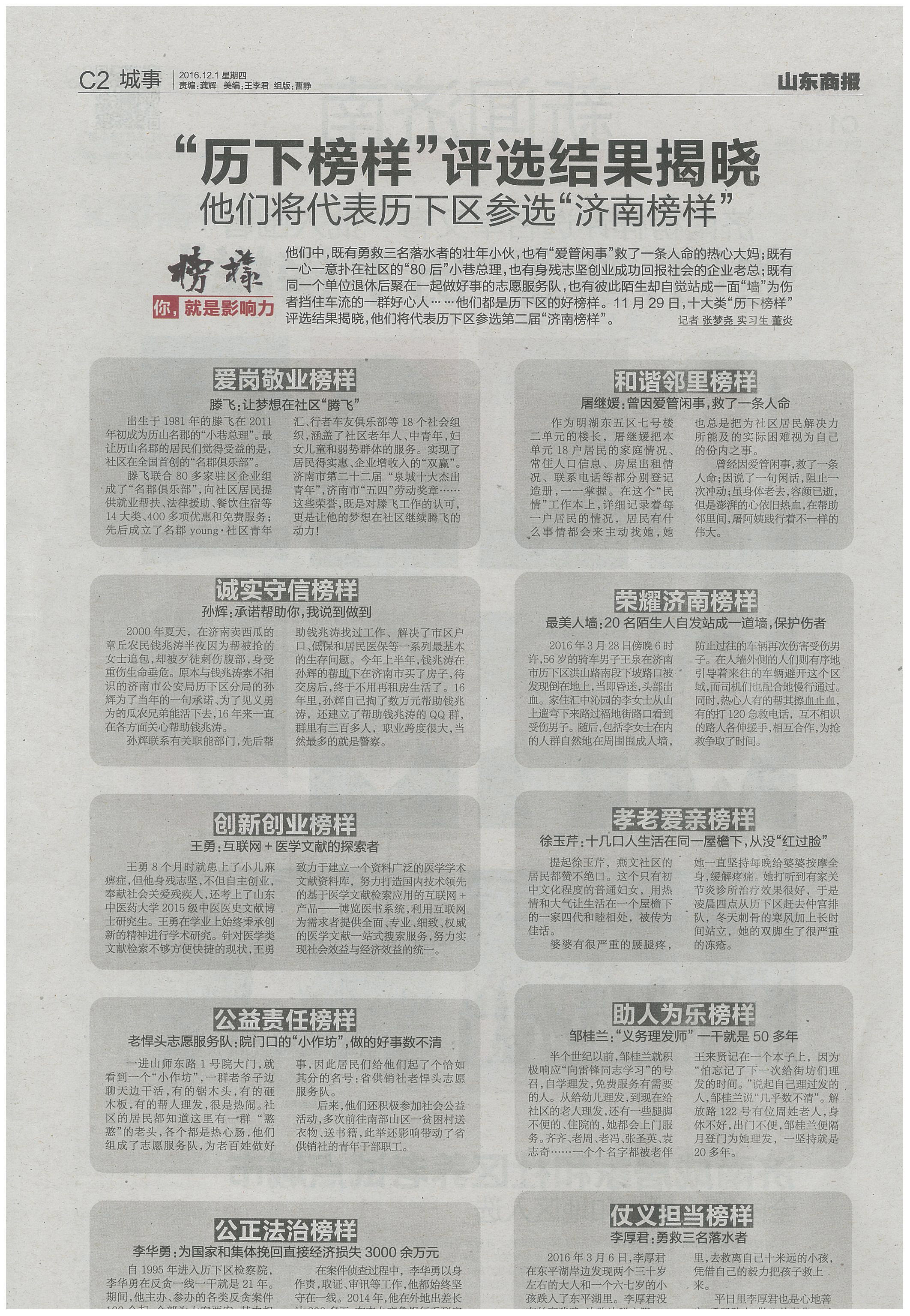 2016年11月29日,十大类“历下榜样”评选结果揭晓,江南网页版登录入口董事长王勇荣获“历下榜样·创新创业榜样”称号,并将代表历下区参选第二届“济南榜样”。
