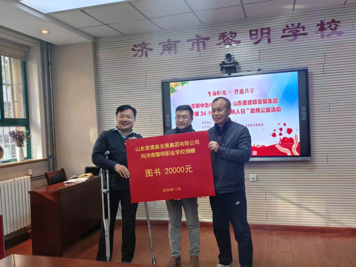 11月18日,山东麦德森发展集团、山东新中鲁中医医院联合主办的“生命阳光·普惠共享——庆祝第34个‘国际残疾人日’助残公益活动”在济南市黎明学校举行。