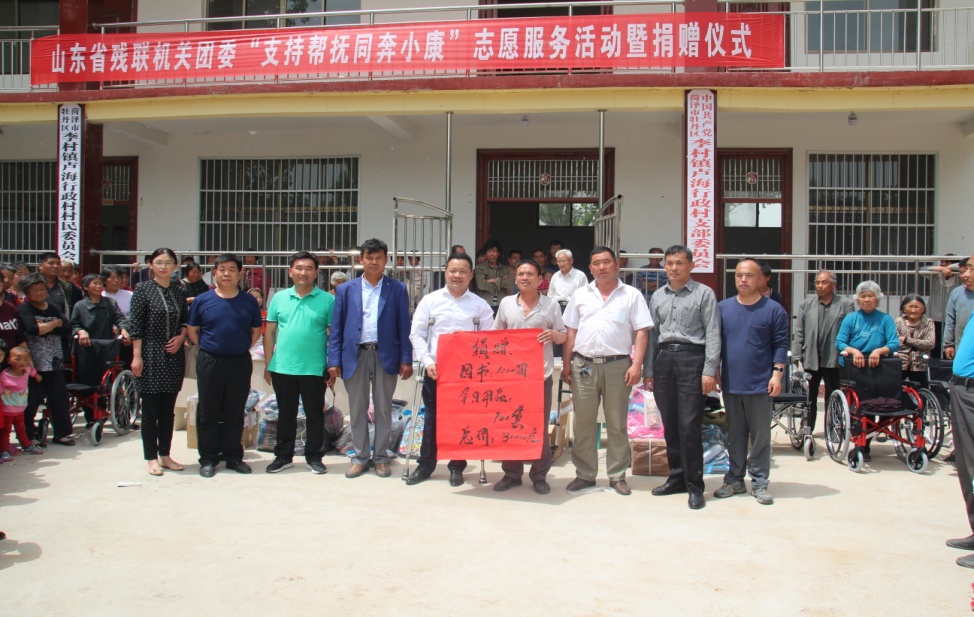 5月5日,山东省残联机关团委“支持帮抚同奔小康”志愿服务活动暨捐赠仪式在菏泽市牡丹区李村镇卢海行政村举行。我集团董事长王勇受邀参加并捐献价值3万元的图书和学习用品。