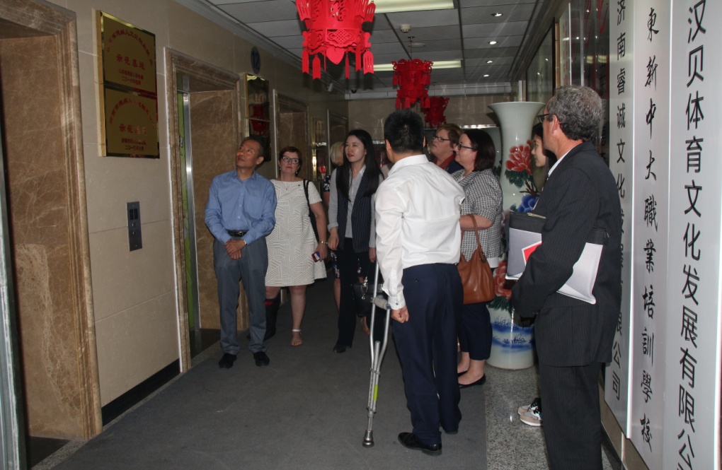 2017年5月9日,澳大利亚南澳州社区及社会包容部残疾人服务处主任缪丽尔·柯比一行6人在省残联和市残联领导的陪同下莅临我集团参观指导。集团董事长王勇、山东麦德森出国留学服务有限公司总经理田凌陪同考察。