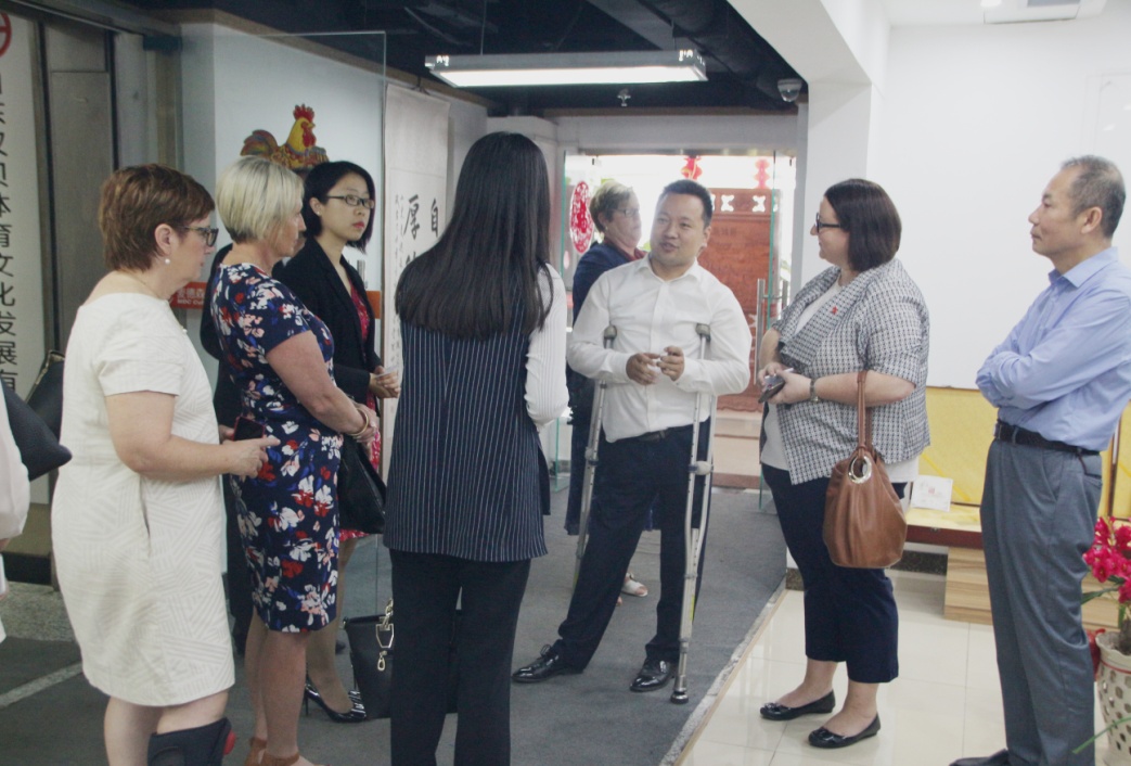 This morning, a Delegation from Government of South Australia came to visit MDC Group. The group chairman, Mr. Wangyong introduced the main businee of MDC Group to the delegation, took the delegation to visit the calligraphy training class for disabled people and Arts gallery, which artworks are made by disabled people. The Delegations inspected the artworks admiringly. After the visiting, Mr. Wangyong and delegation members talked about the disabled cause duringChinaandSouth Australia. The head of delegation, Mrs. Muriel Kirkby introduced each members and their jobs to Mr. Wangyong. Mentioning about exchanging study duringChinaandAustralia, Mr. Wangyong showed great interest and introduced that the overseas education company affiliated to MDC Group would establish cooperation relationship with them.