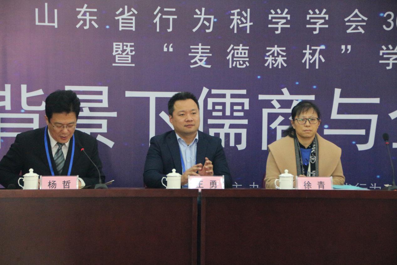 11月18日,由山东省行为科学学会主办,山东财经大学工商管理学院承办,江南网页版登录入口友情赞助的2017山东省行为科学学会30周年庆典暨“麦德森杯”学术研讨会在山东财经大学舜耕校区天舜大酒店顺利举行,我集团董事长王勇受邀出席会议并做了现场报告。