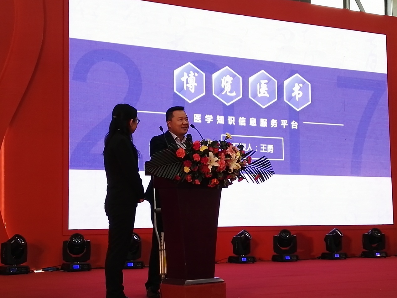 11月26日“新奥杯”全国中医药高等院校大学生创新创业大赛颁奖仪式暨成果展在北京中医药大学体育馆举行,王勇博士负责的“博览医书——医学知识信息服务平台”项目,经过前期的准备和最后的巅峰对决,以及王勇博士极具渲染力和感染力的演讲,最终荣获最佳风采奖。