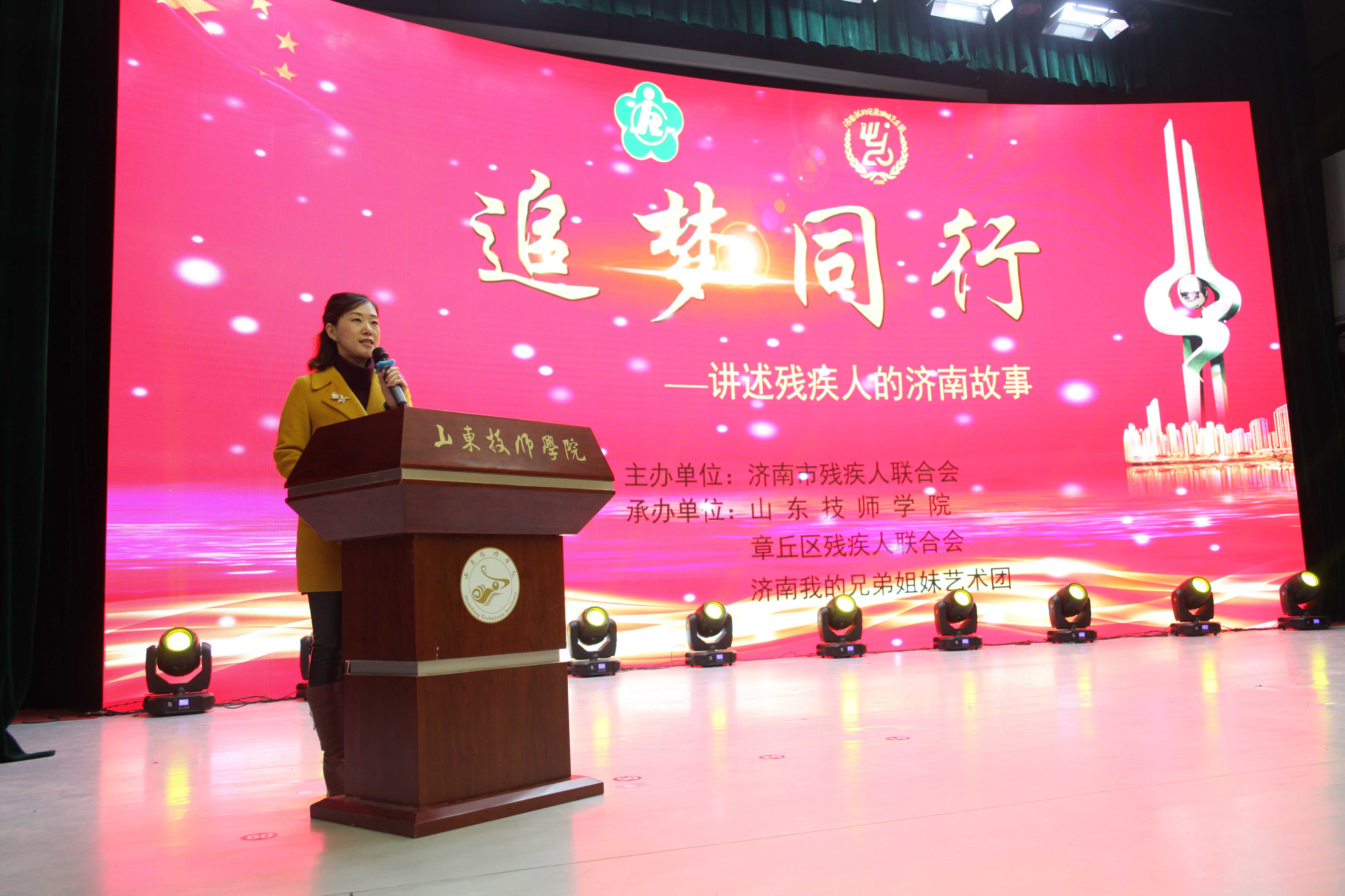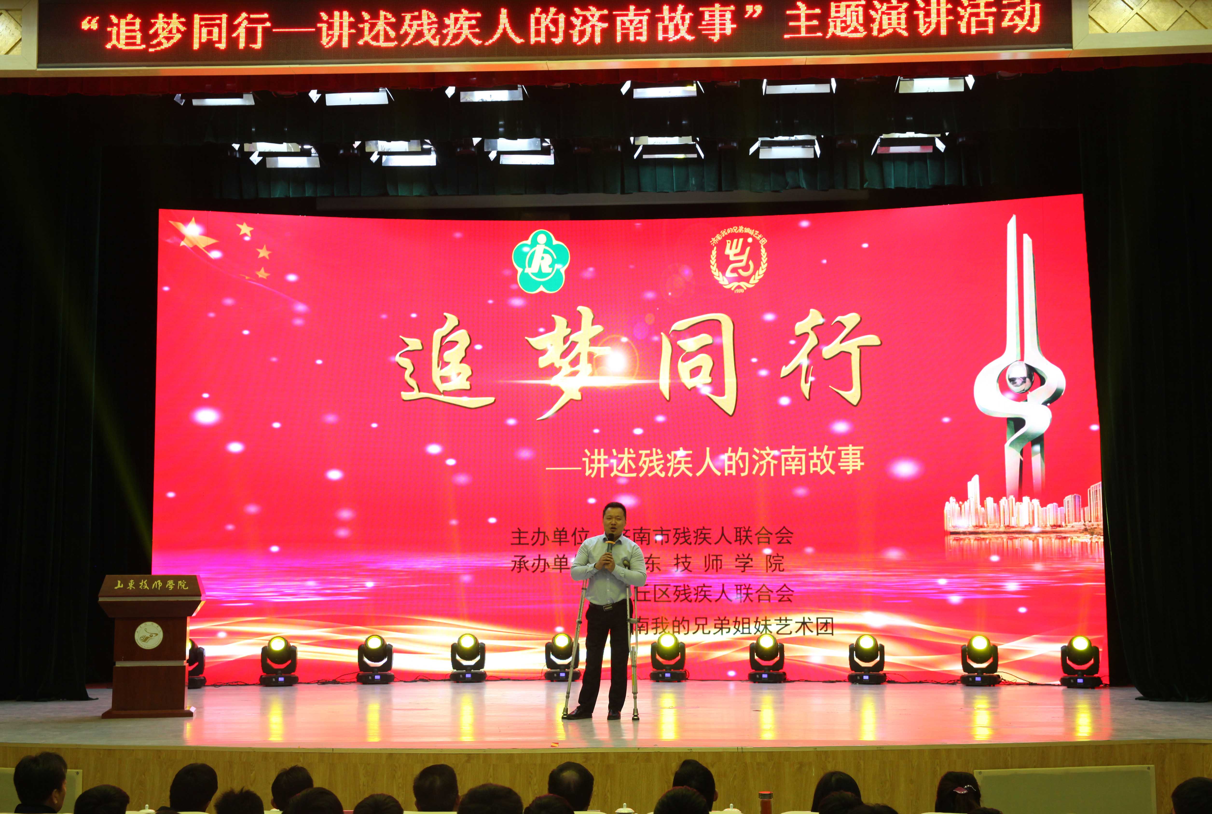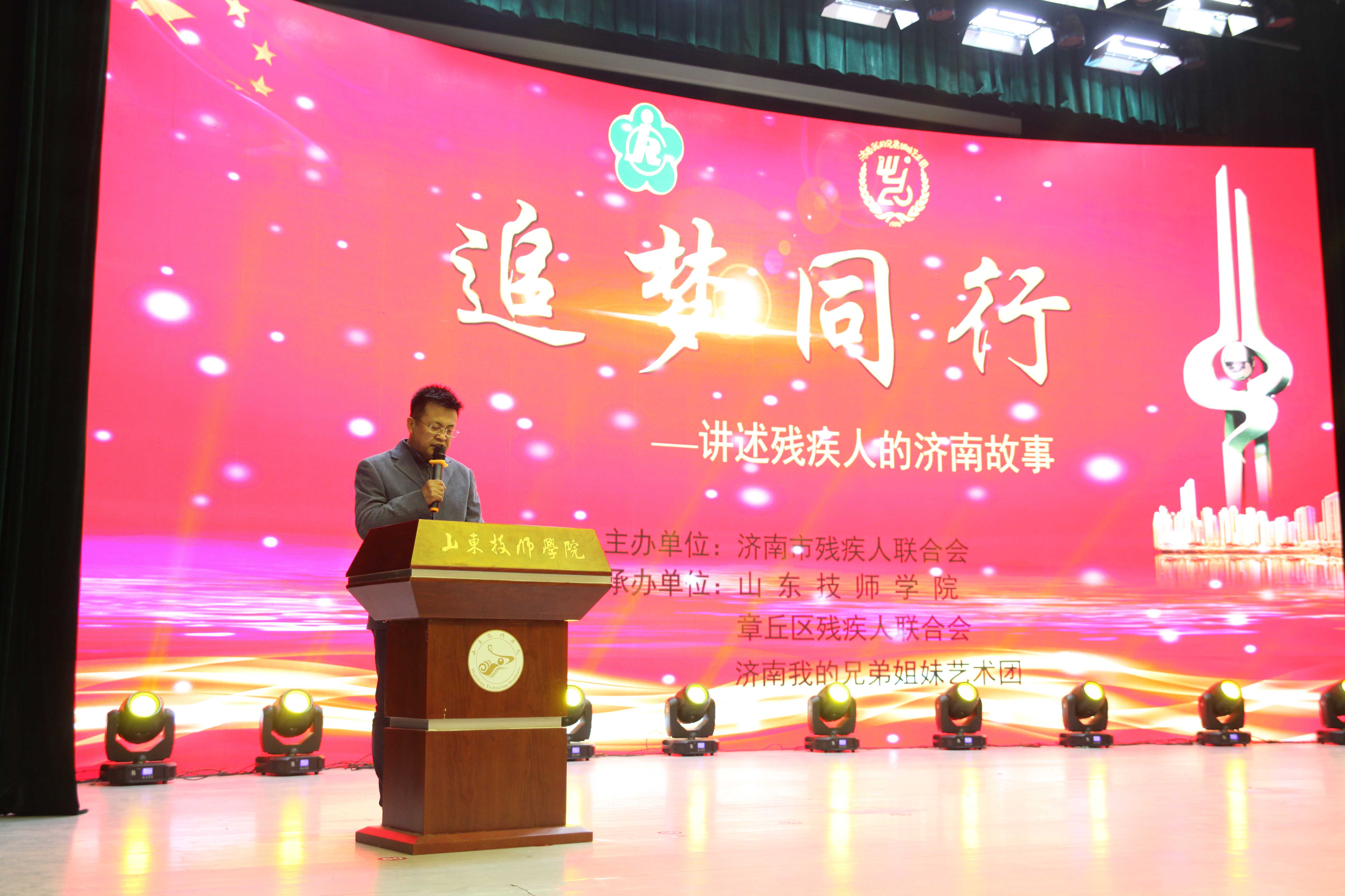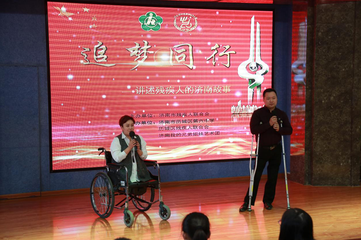 为热烈庆祝第26个国际残疾人日的到来,自11月27日起,由济南市残疾人联合会主办,济南我的兄弟姐妹艺术团承办的“追梦同行 — 讲述残疾人的济南故事”主题演讲暨演出活动,已在济南市残联、历城区第六中学、山东中医药大学以及山东技师学院成功举办了四场演出。我集团董事长王勇作为演讲嘉宾参加了整次巡演。