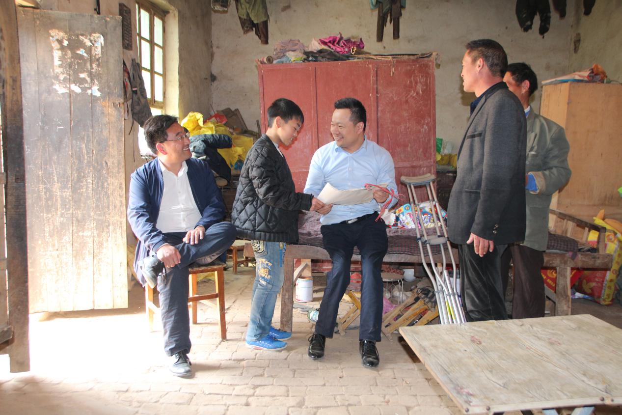 在当地村干部的带领下,王勇董事长先后走访了3户困难家庭,并与之进行了沟通交流,对困难家庭的生活状况,孩子的学习情况进行了深入了解。他结合自身经历,以“努力、梦想、感恩”为主题,鼓励孩子们要放下心理上的包袱,勇于追求自己的梦想,勤奋学习,积极进取,争取用知识改变命运。