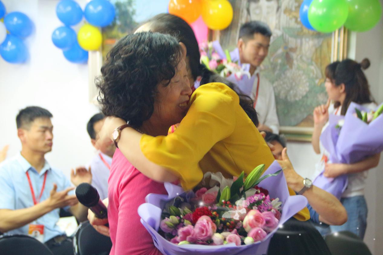当大家轮流讲出与妈妈的故事,把埋藏心里的话告诉妈妈时,现场满满的都是幸福与感动。一首《真的爱你》将活动引入高潮,看着来到现场的几位妈妈走到前方,接过子女献上的花束,拿着工会准备的礼物,拥抱在一起,大家的眼泪潸然落下。并不需要多华丽的语言,只要一句“妈妈,我爱你”就是最好的声音。