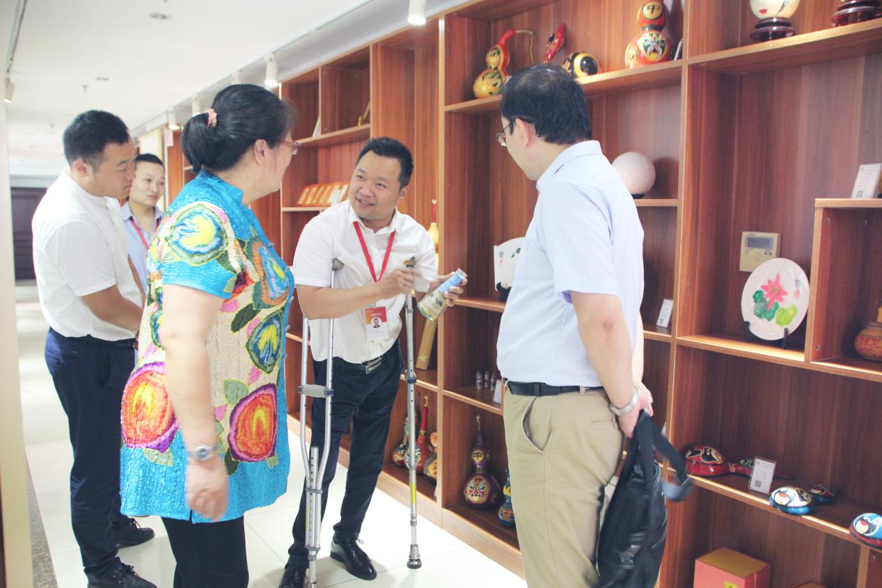 首先,在王勇董事长的陪同下,谈毅书记一行对我集团总部进行了系统的参观考察。从集团旗下各子公司的发展状况,到残疾人文化艺术长廊、办公区域以及各职能部门的建设运营,谈毅书记都给予了高度评价,特别是对我集团建设残疾人文化艺术长廊,促进残疾人文化事业发展的做法,表示赞赏与支持。