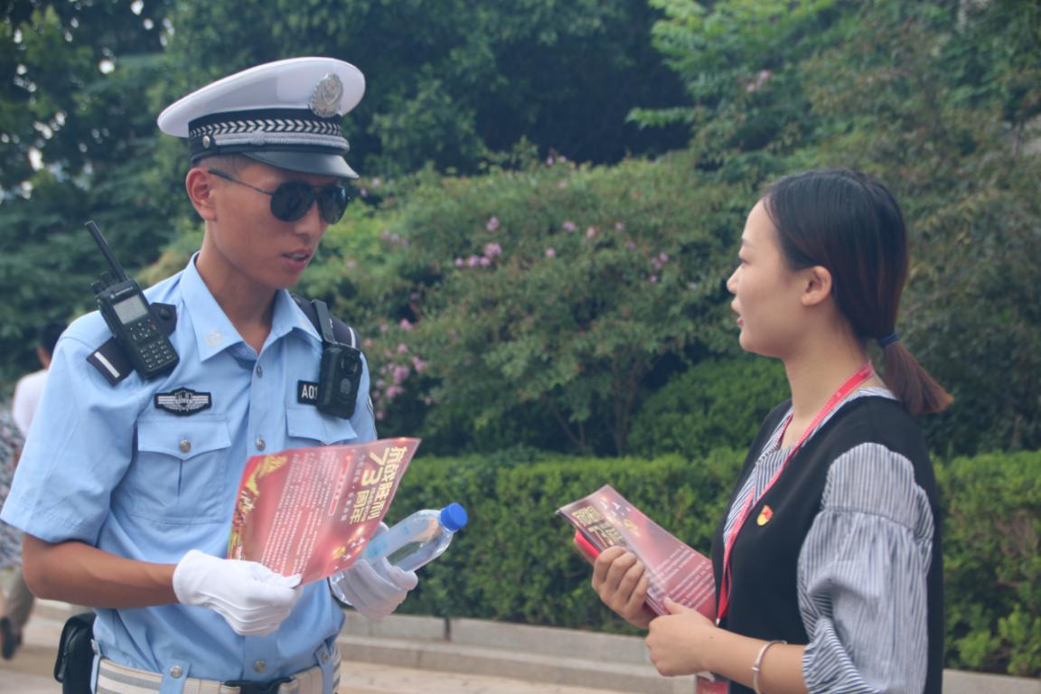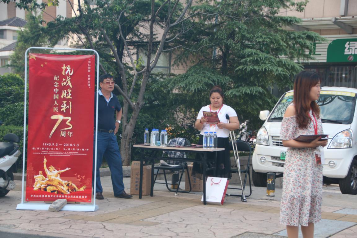 活动地点设立在齐源大厦楼前,大家将前期准备好的学习材料和矿泉水一一分发给往来的行人,并向大家介绍即将到来的抗战胜利纪念日,以及抗战胜利带给我们生活的影响,倡导大家积极学习了解抗战历史,以史为鉴,传递正能量。大家对此也非常关注,纷纷表示要认真积极的学习国家历史发展,弘扬伟大革命抗战精神,坚定个人理想信念,承担起自己的责任和使命。