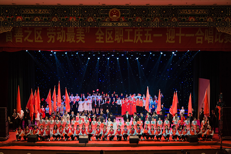 此项赛事共有来自各街道工会、企事业单位工会的16支合唱代表队参赛,每支合唱队现场竟演一部合唱作品,角逐比赛的最高奖项——优胜奖!区人大常委会主任、党组书记韩宏伟,区政协主席、党组书记席曹辛,市总工会副主席戚淑斌,区委副书记尹红梅等领导出席活动。