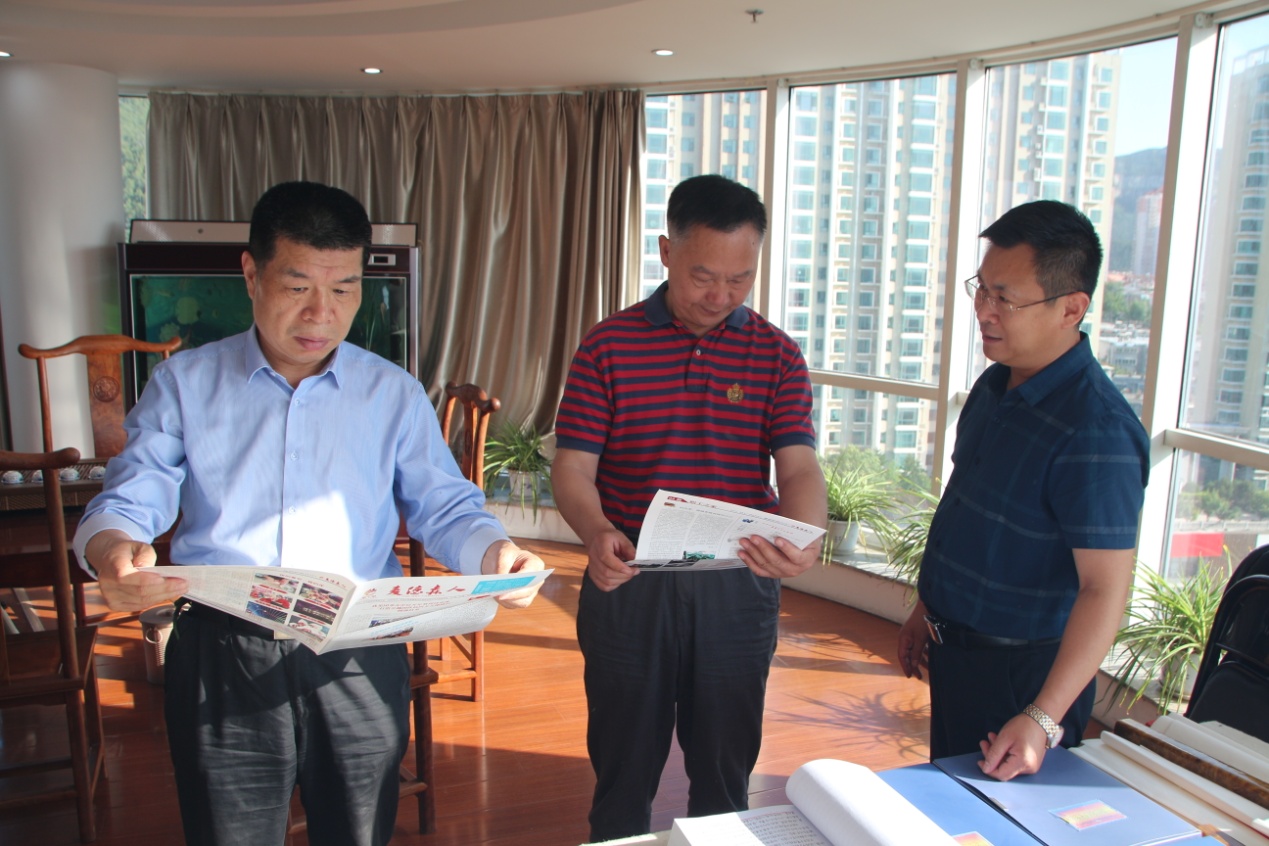 5月20日,山东省革命老区建设促进会副会长尹家铜少将、副会长兼秘书长王波、《雷锋》杂志副总编辑张振江等领导一行莅临我集团考察指导工作并召开座谈会。受集团党支部书记王勇博士委托,集团公司总经理李校伟、史志事业部总经理张永华、执行董事王兴法等陪同考察。