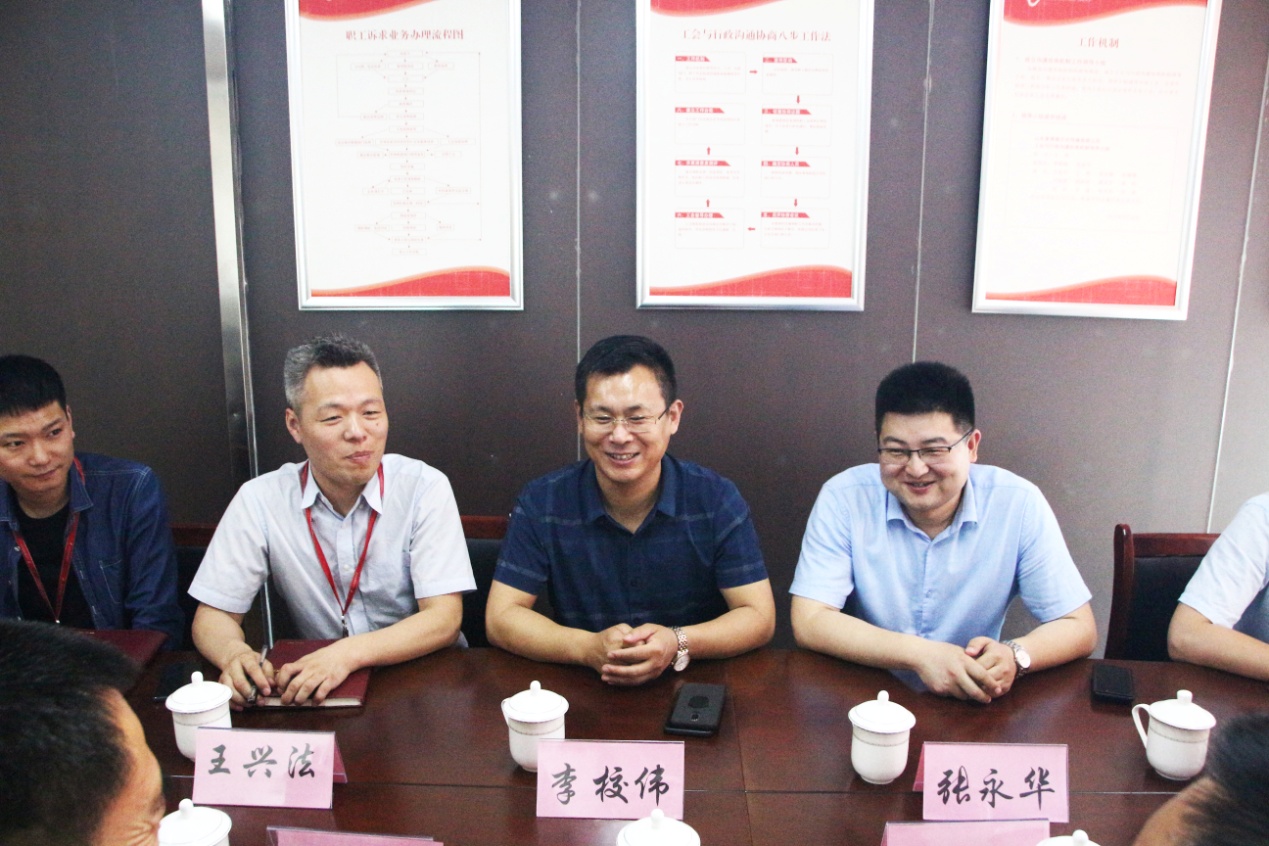 在李校伟带领下,尹会长一行依次参观了集团党员活动室、企业文化墙、残疾人文化艺术长廊、以及各业务职能部门办公区域。李校伟详细介绍了集团发展历程、经营现状以及对企业未来发展方向的展望,他表示,我集团在党支部书记王勇博士带领下,坚持“党建引领,把握趋势,定标对标,科教兴企”的发展战略和“诚信为本,质量第一,成就客户”的经营理念,在打造独具特色的民营企业党支部的同时,锻造五一工程,争创世界品牌。