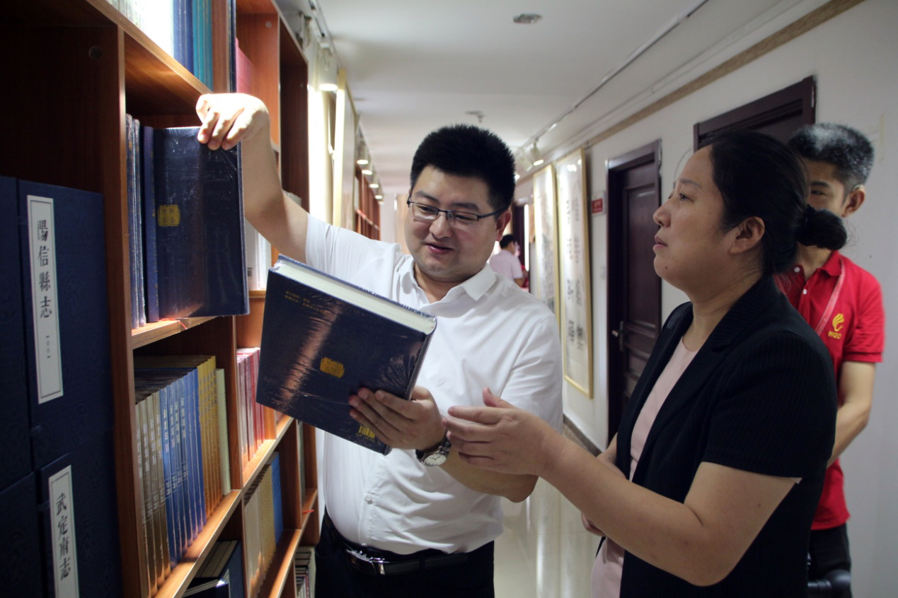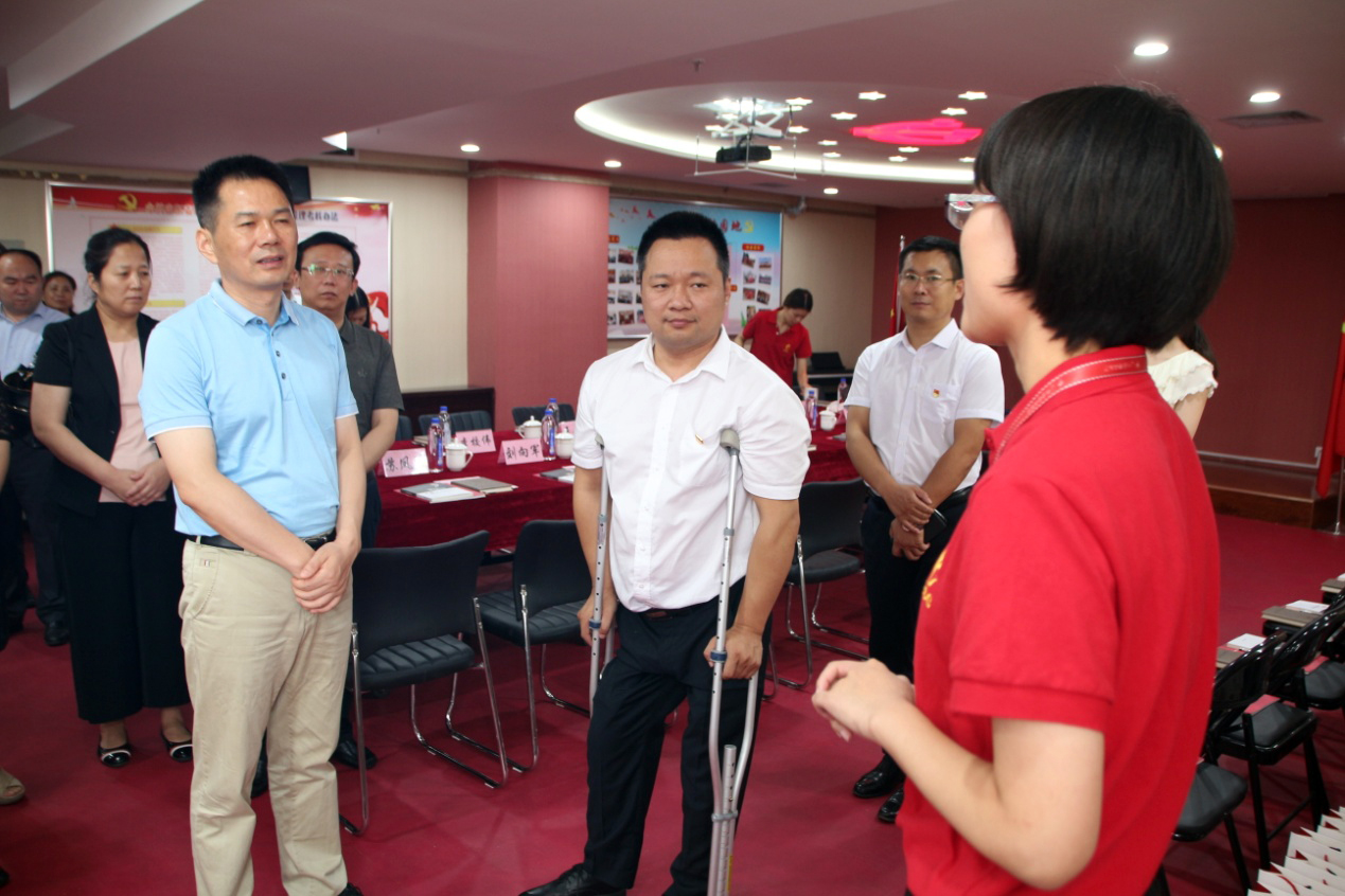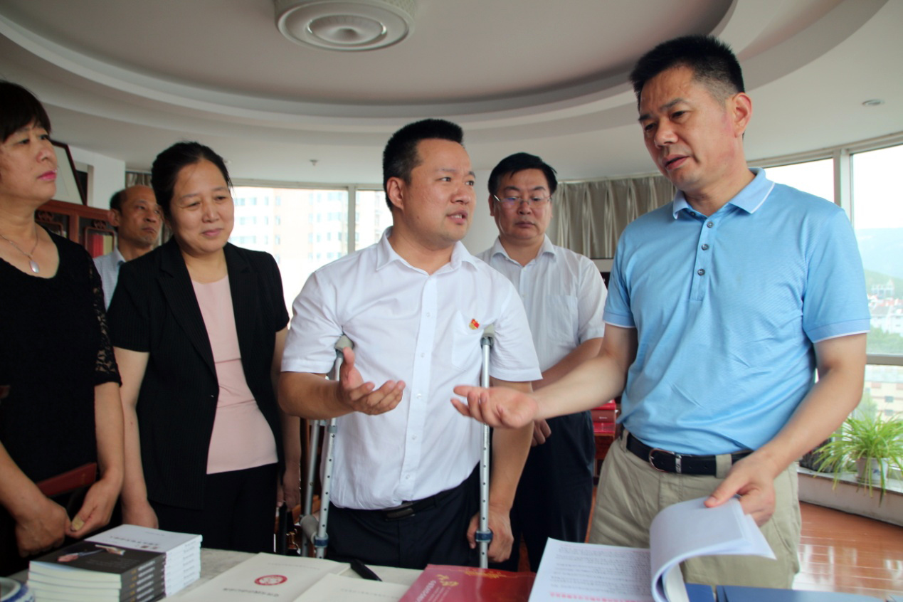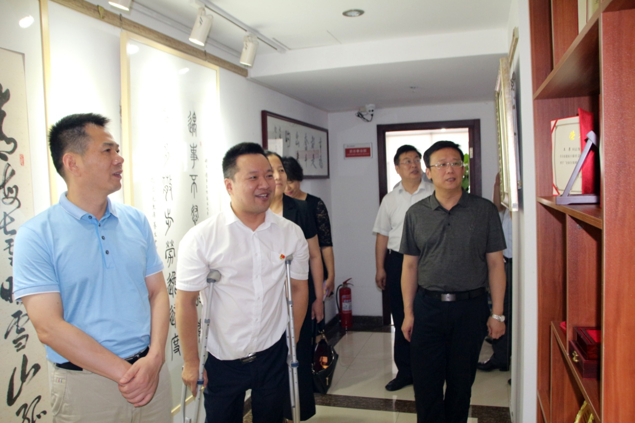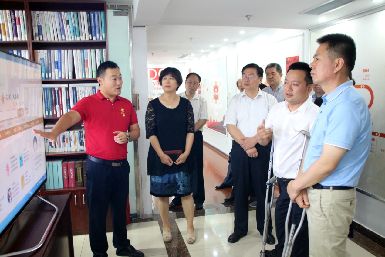 在王勇博士的陪同下,谢兆村区长等领导一行对集团整体业务发展情况进行了解,并对集团党支部建设、残疾人事业发展、医学知识信息服务平台——“博览医书”项目等内容进行深入调研。