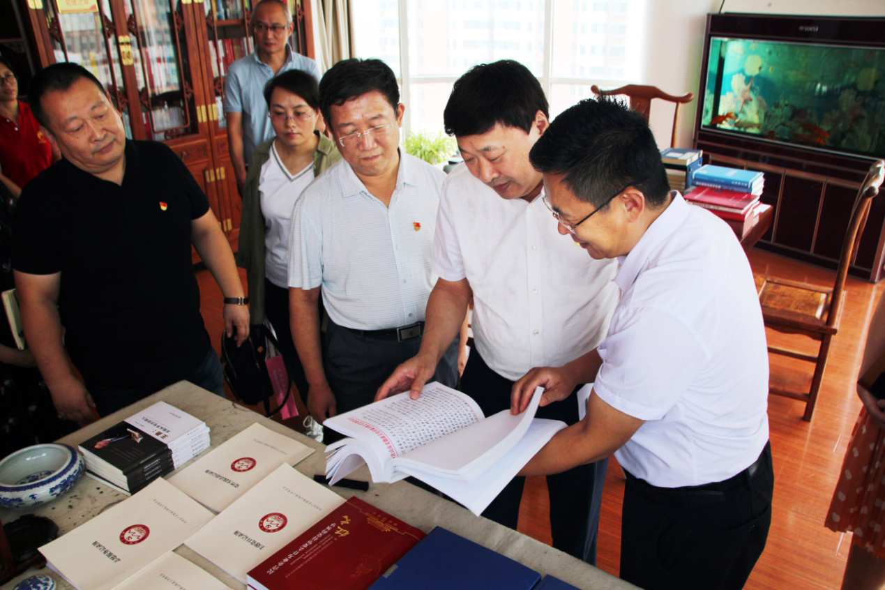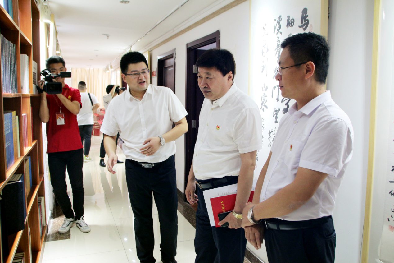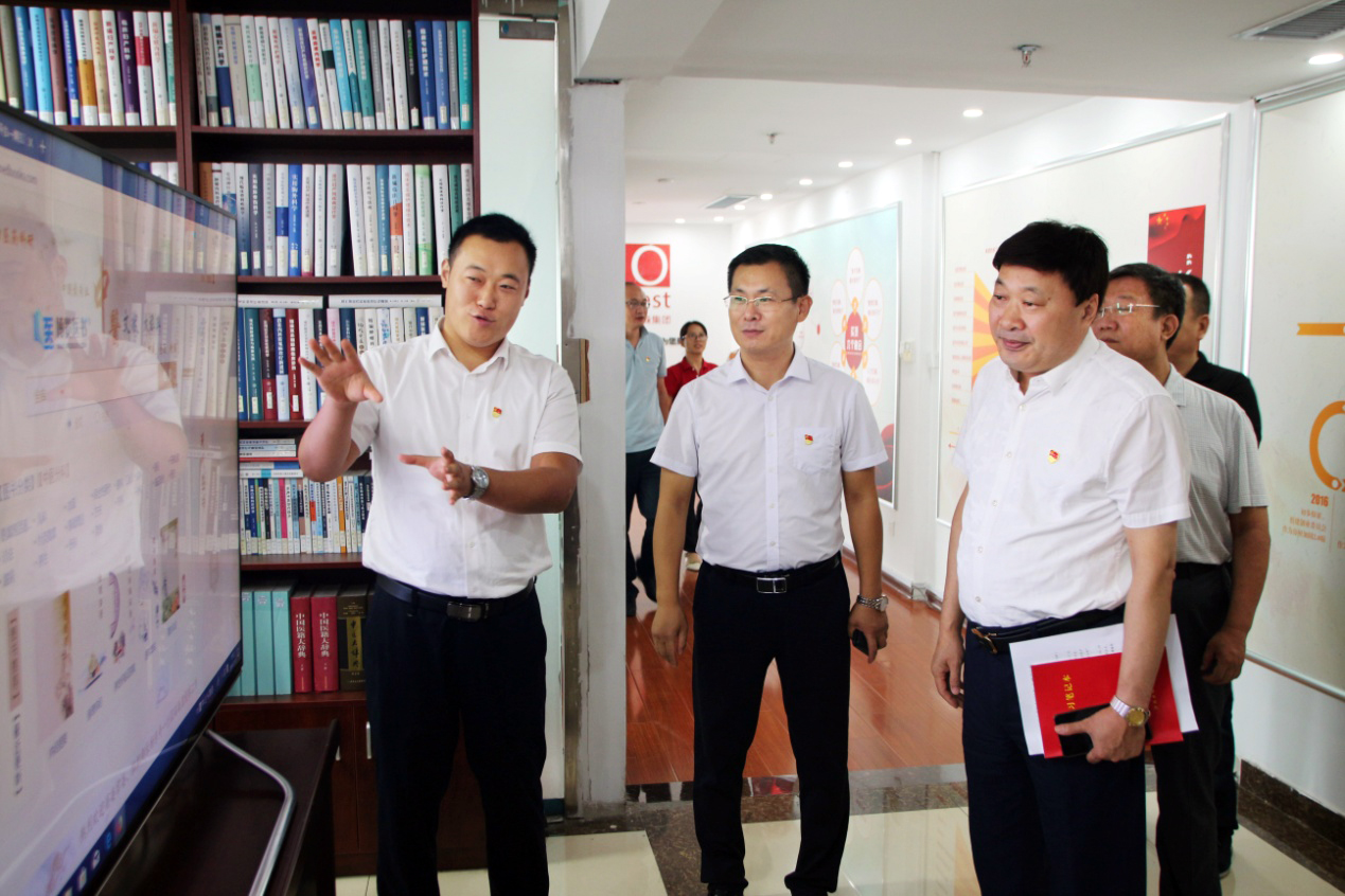 在李校伟总经理的带领下,张谨国副局长一行依次参观了集团企业文化墙、残疾人文化长廊以及各业务职能部门办公区域,并在党建活动室认真查阅了集团党员手抄党章、党日活动征文等企业党建工作材料。参观过程中,李校伟向领导们详细介绍了集团企业文化、党员突击队建设以及“长鼓型”党建工作法;集团业务部门负责人就“医学知识信息服务平台——‘博览医书’”、“史志年鉴编辑出版”等业务项目建设情况向各位领导作出介绍。
