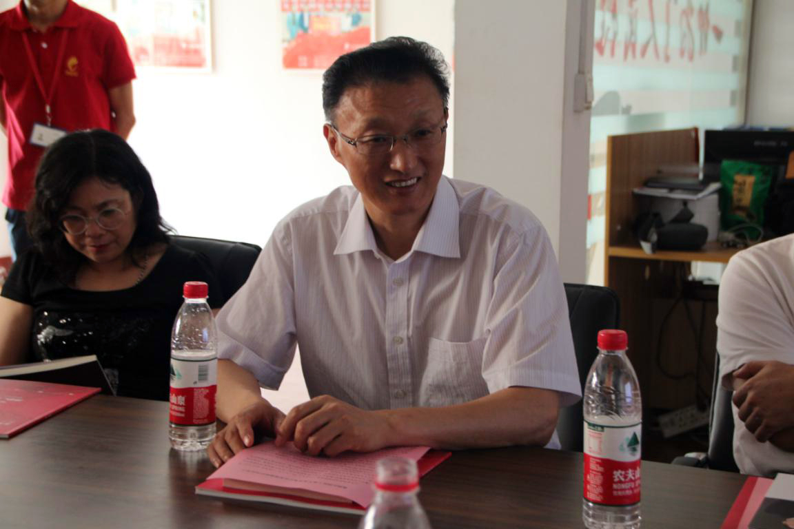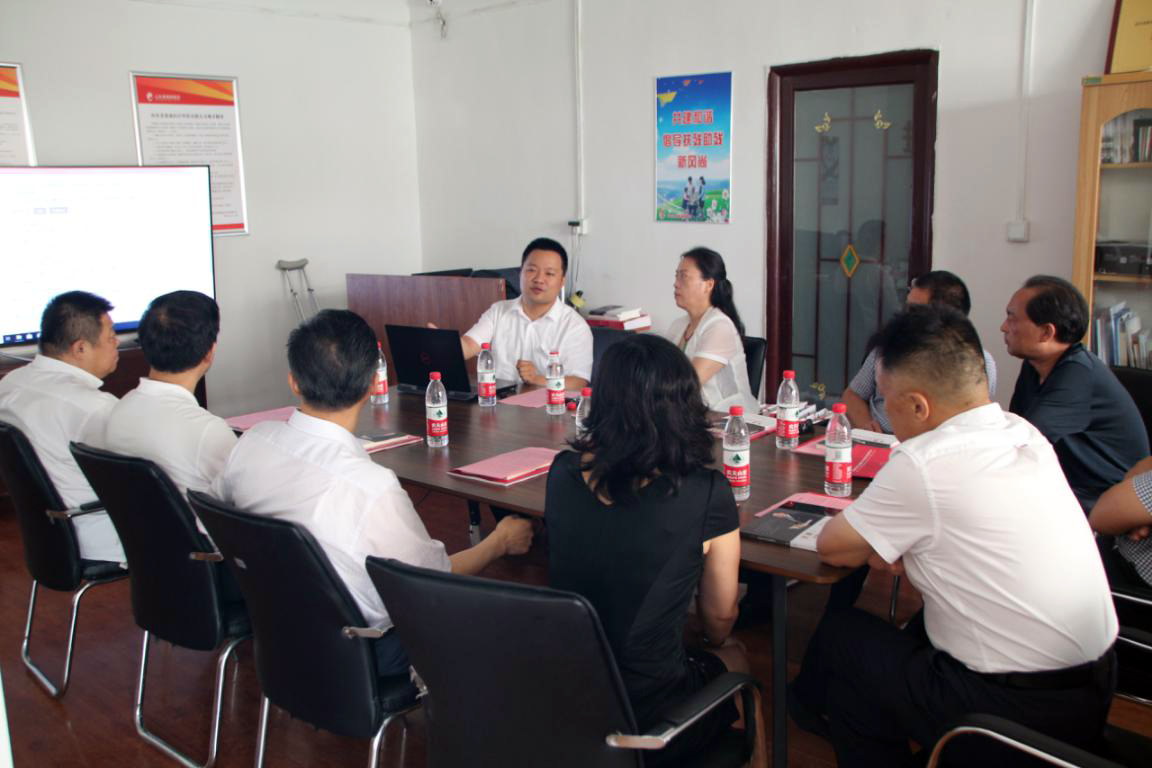 王勇博士向领导们详细介绍了集团企业文化、残疾人就业安置、福利以及“长鼓型”党建工作法,并就企业目前经营现状和未来中医药健康领域发展方向向领导们作出汇报。