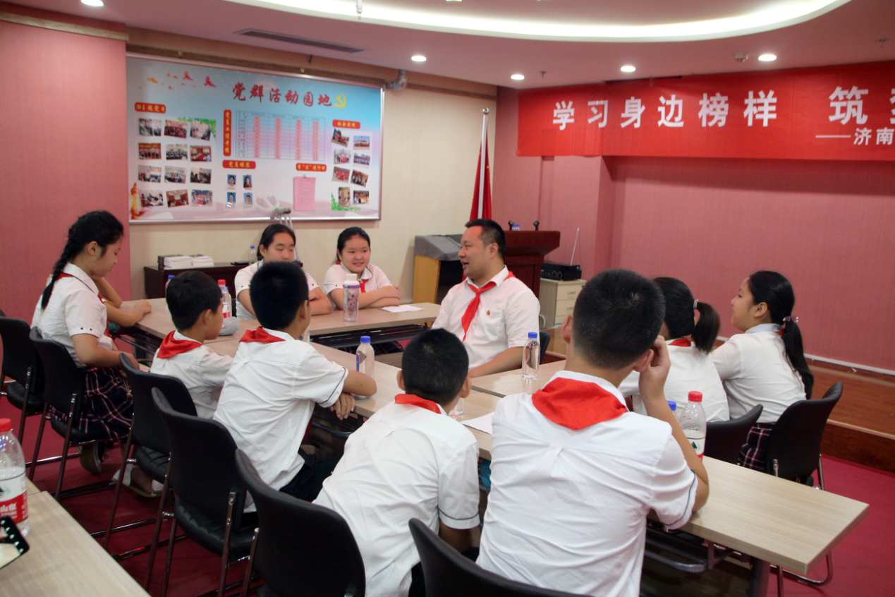 交流座谈后,少先队员们跟随集团党支部副书记桑守正同志对企业进行了参观,大家在党群活动室合影留念。