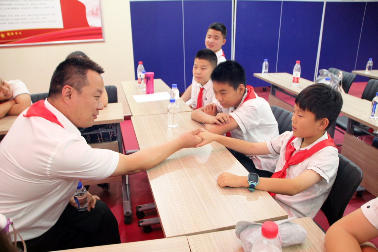 下午15时,济南燕山学校小学部五(3)中队的少先队员们来到麦德森总部,开展“学习身边榜样、筑梦勇于担当” 寻访“全国自强模范”王勇活动。