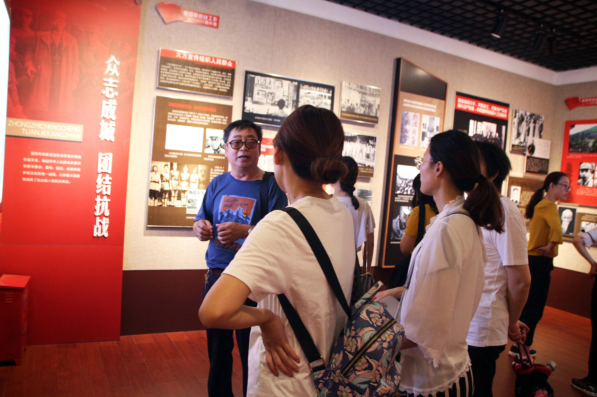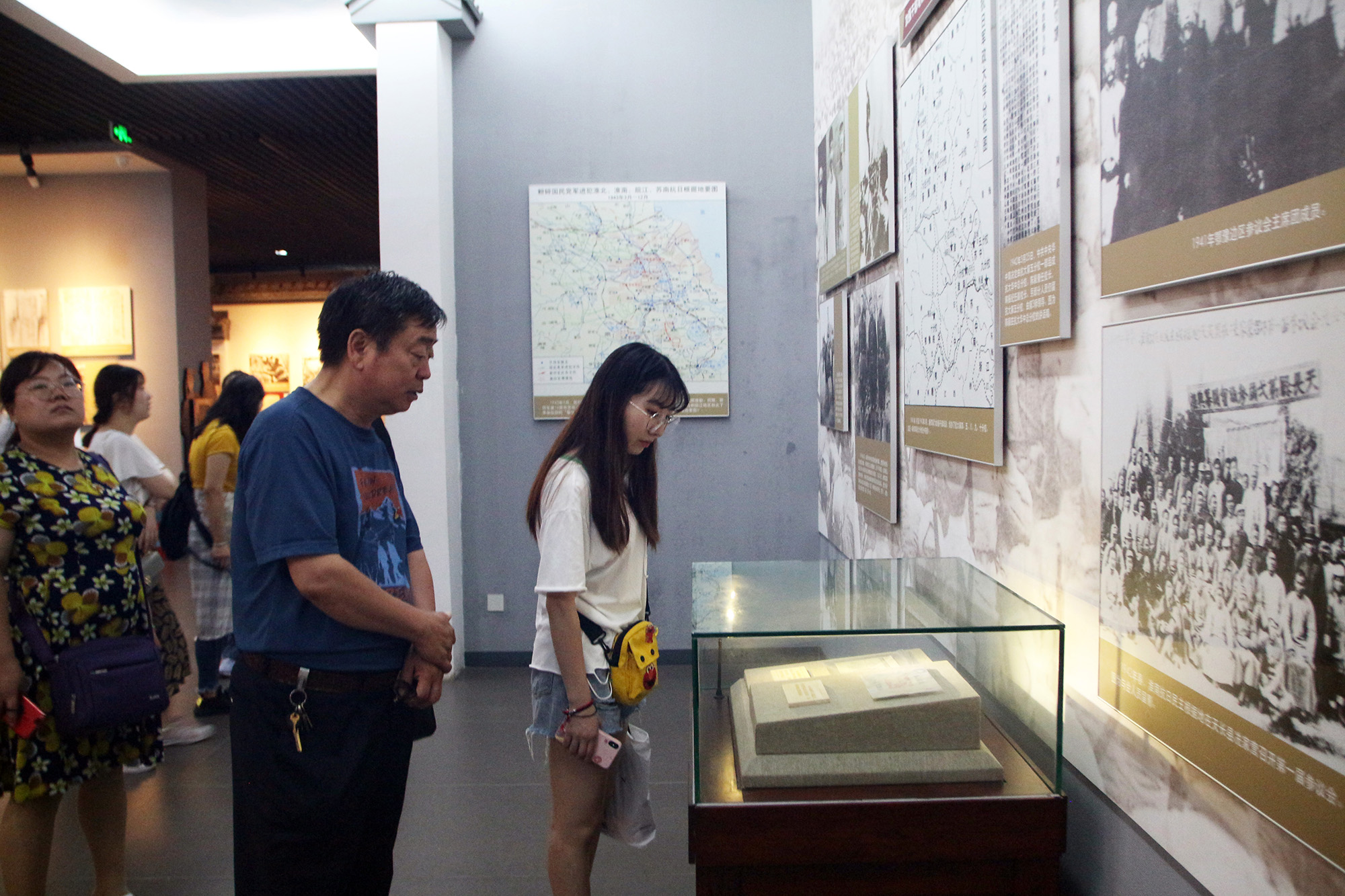 进入新四军军部旧址展览大厅,一把被红色丝带缠绕着的大型金色军号金光闪闪的伫立在那里,它的后面是一幅巨大的油画,栩栩如生,象征着革命的胜利。跟随着讲解员,我们一路观看了“浴血坚持”“谈判改编”“敌后抗战”和“完成使命”四个部分展览内容,通过众多的图片、文字、影像资料了解了新四军将士在南昌战斗、生活的点点滴滴,深刻体会到了革命先辈们勇于牺牲、甘于奉献的精神。