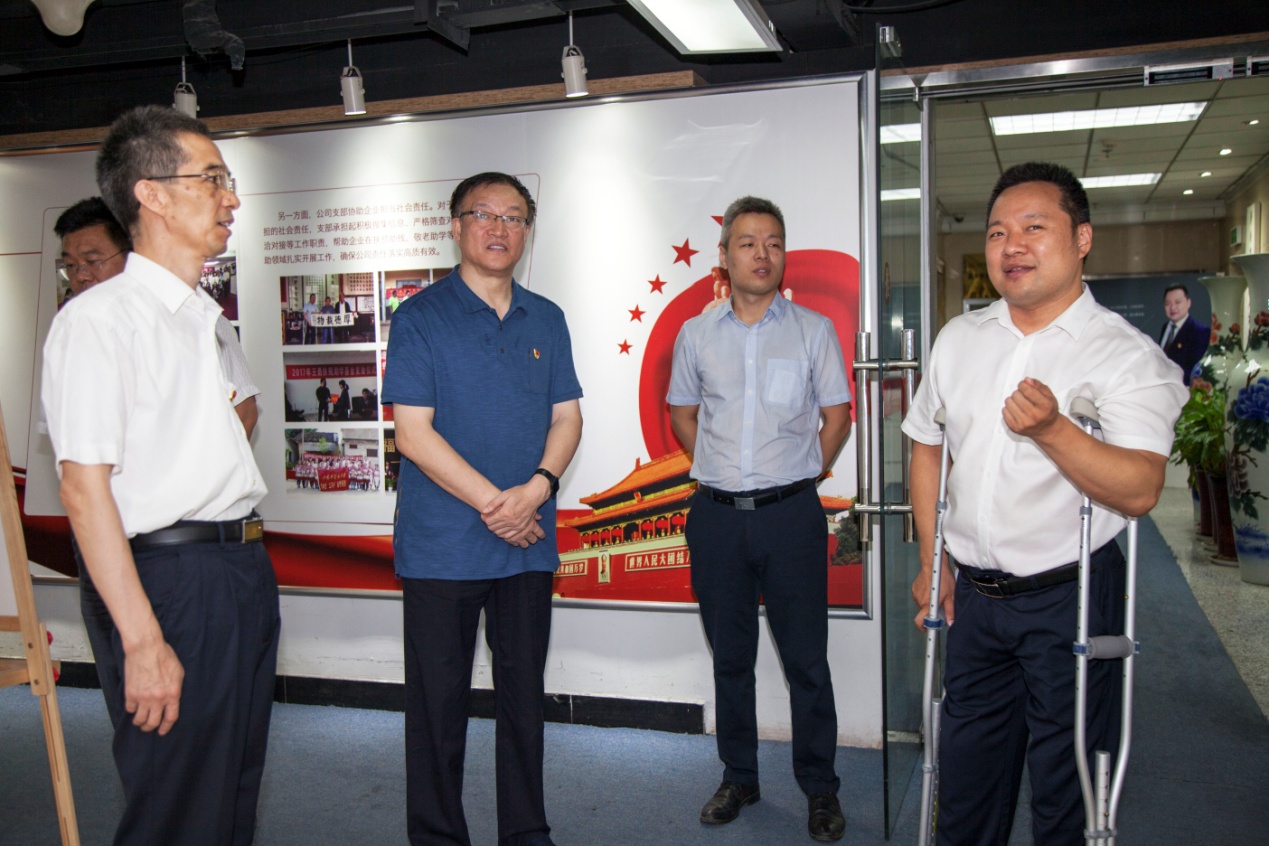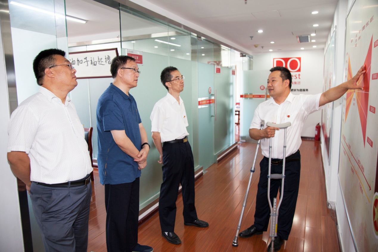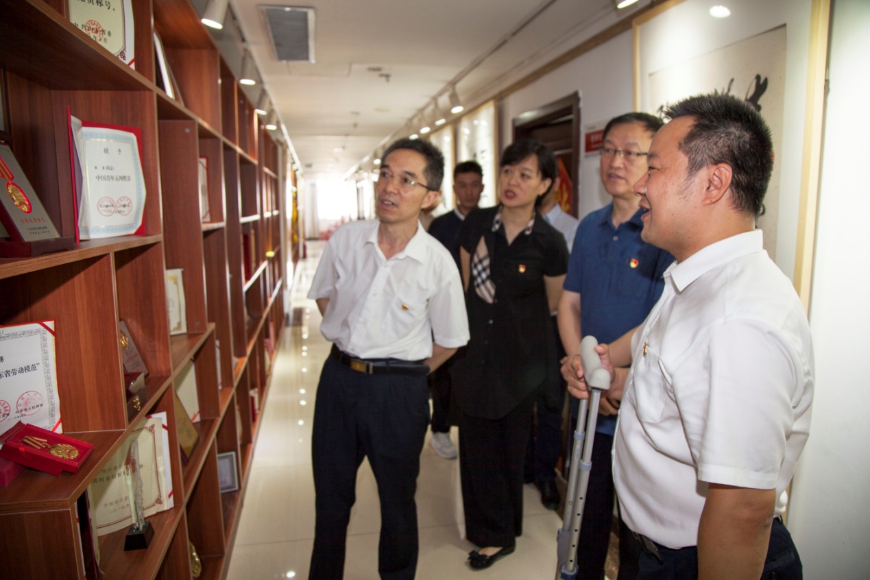 在王勇博士的带领下,省司法厅领导们依次参观了集团企业文化墙、党员活动室、党建宣传墙、企业荣誉展架以及集团公司各业务职能部门办公区域。参观过程中,王勇博士向各位领导详细介绍了集团党务工作和业务工作当前发展情况和未来发展方向。