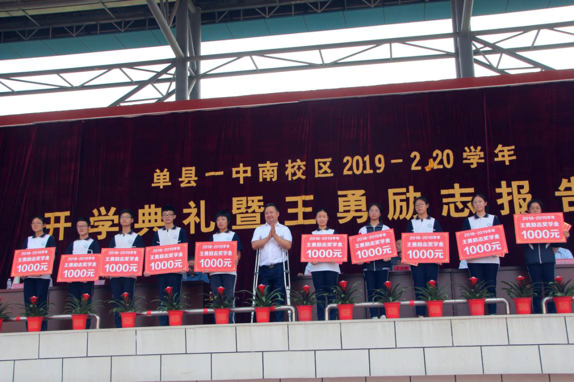 为帮助更多优秀学子完成学业,实现梦想,自2018年起,王勇博士捐资30万元设立了“单县一中王勇励志奖学金”,每年出资最少5万元用于奖励品学兼优的优秀学子。