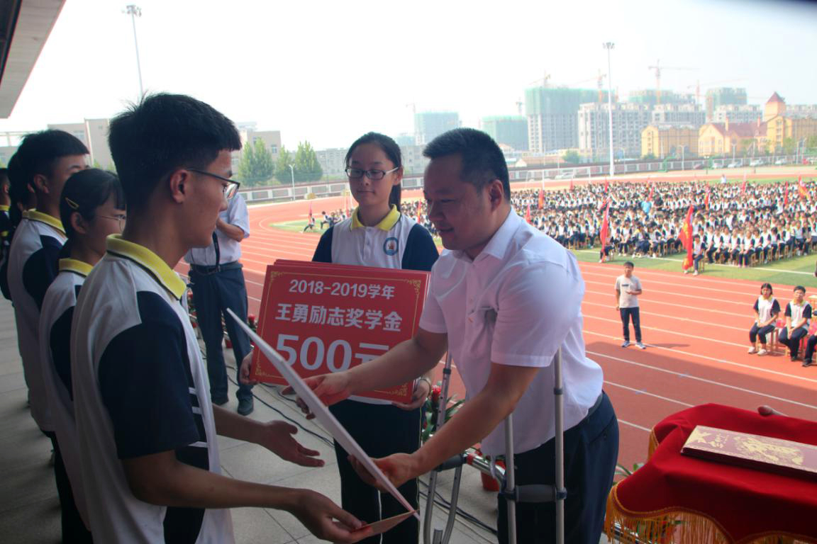9月7日,“单县一中南校区2019-2020学年开学典礼暨王勇励志报告会”在菏泽市单县第一中学操场隆重举行。我集团党支部书记王勇博士回到母校出席典礼并现场发放本年度“王勇励志奖学金”。县政协副主席、单县一中校长赵瑞等领导出席开学典礼。