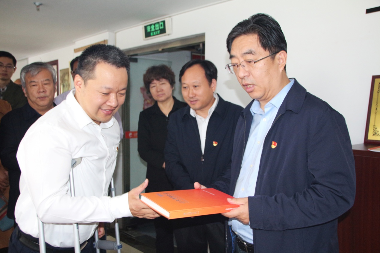 随后,省市县乡四级残联党支部党员与“全国自强模范”代表、“中国青年五四奖章”获得者、我集团党支部书记王勇博士等集团代表在党群活动室共同开展主题党日座谈会。