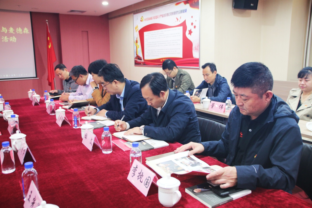 为切实提升机关第一党支部“三联三促、牵手同行”党建品牌实效,10月12日上午,山东省残联副理事长、党组成员黄庆峰等省残联机关第一党支部党员代表,济南市残联党组成员、副理事长曲国庆等市残联第一支部党员代表,历下区残联党组书记、理事长何力明等历下区残联党员代表,燕山办事处残联理事长,社会事务科科长盛善华等燕山办事处党员代表一行莅临我集团,开展“省市县乡四级残联联动与麦德森共建共促”主题党日活动。省残联办公室副主任、三级调研员田文主持活动。集团党支部书记王勇博士参加活动并就自己求学创业的奋斗事迹做出详细汇报。