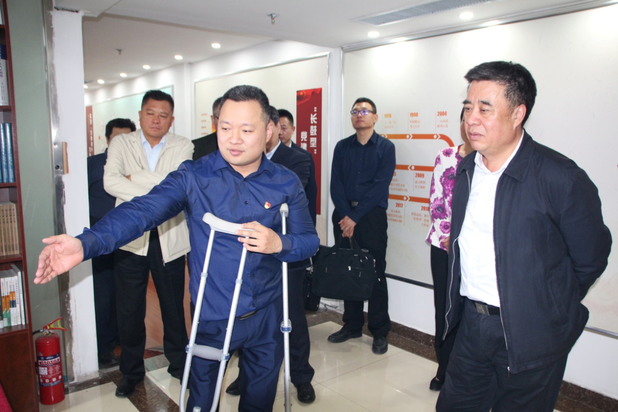随后,王勇博士陪同各级残联领导参观了集团各业务职能部门办公区域以及党群活动室。
