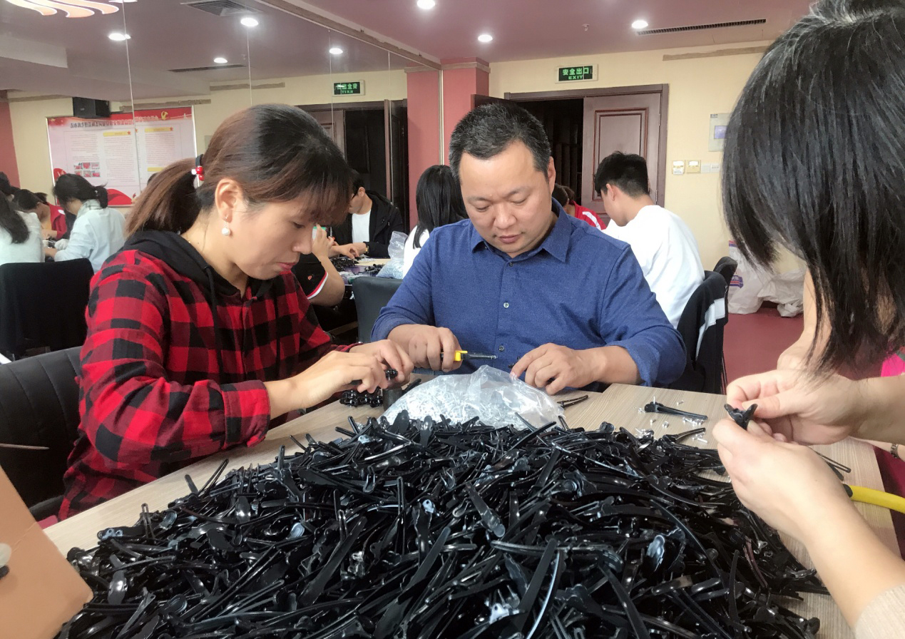 此次突击任务是制作“夹子”,既要“装钉子”,又要“放弹簧”……突击队队员们面对此项“陌生的工作”无所畏惧,在技术人员的悉心指导下,大家分工明确,迅速掌握各步骤工作技巧,并在不断实践的基础上逐渐提升工作效率。在五支党员突击队的密切配合下,经过两天的持续奋战,党员突击队顺利完成此次突击任务。