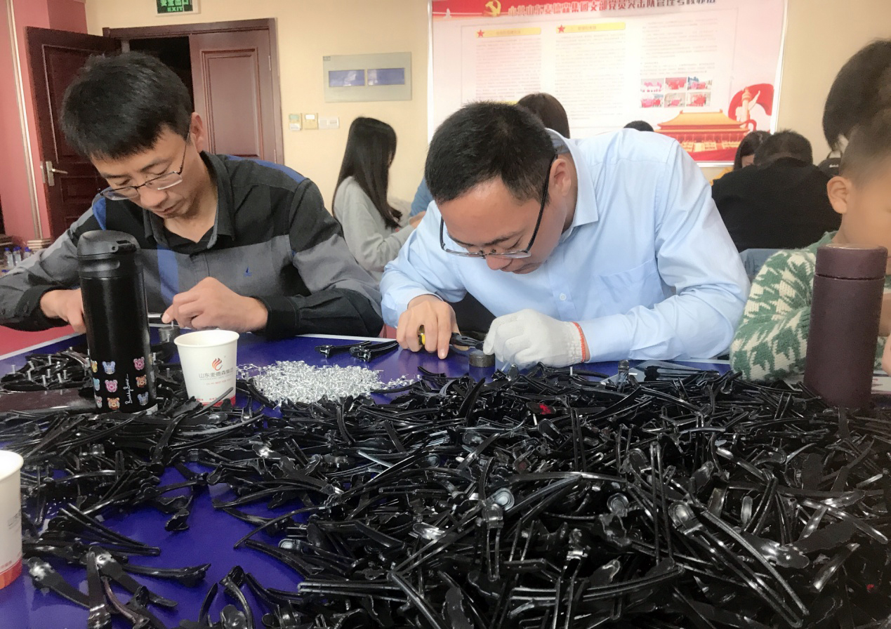 得知此事后,集团党支部五支党员突击队全体队员在不耽误自己本职工作的前提下,纷纷主动出击,承接突击任务,协助刘七沟村残疾人就业基地完成订单。10月19日-20日,在集团党支部书记王勇博士的带领下,五支党员突击队全体队员自愿放弃宝贵的周末假期,全员来到突击任务一线,投入到紧张而有序的突击工作中。