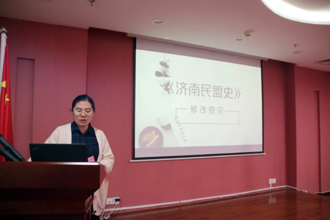 随后,中共济南市委党史研究院(济南市史志研究院)市志编审处副处长刘静就《济南民盟简史》现阶段编撰、修改等情况进行了详细讲解。