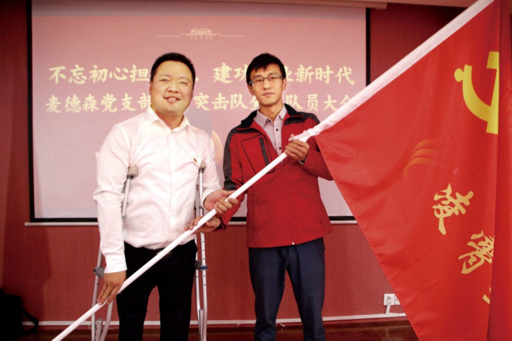 大会上,王勇博士对凌霄突击队的组建表示祝贺,对广大党员突击队队员们在各类突击任务中一直以来的辛勤付出表示感谢。他指出,新闻媒体《工人日报》报道了麦德森集团党支部以党员为核心的党员突击队,以及组织上高度融合、工作上相互促进的“长鼓型”党建工作法,这份殊荣是对集团党支部工作最大的鼓舞和肯定。集团党建工作要以此为新起点,凝心聚力,再上新高度。