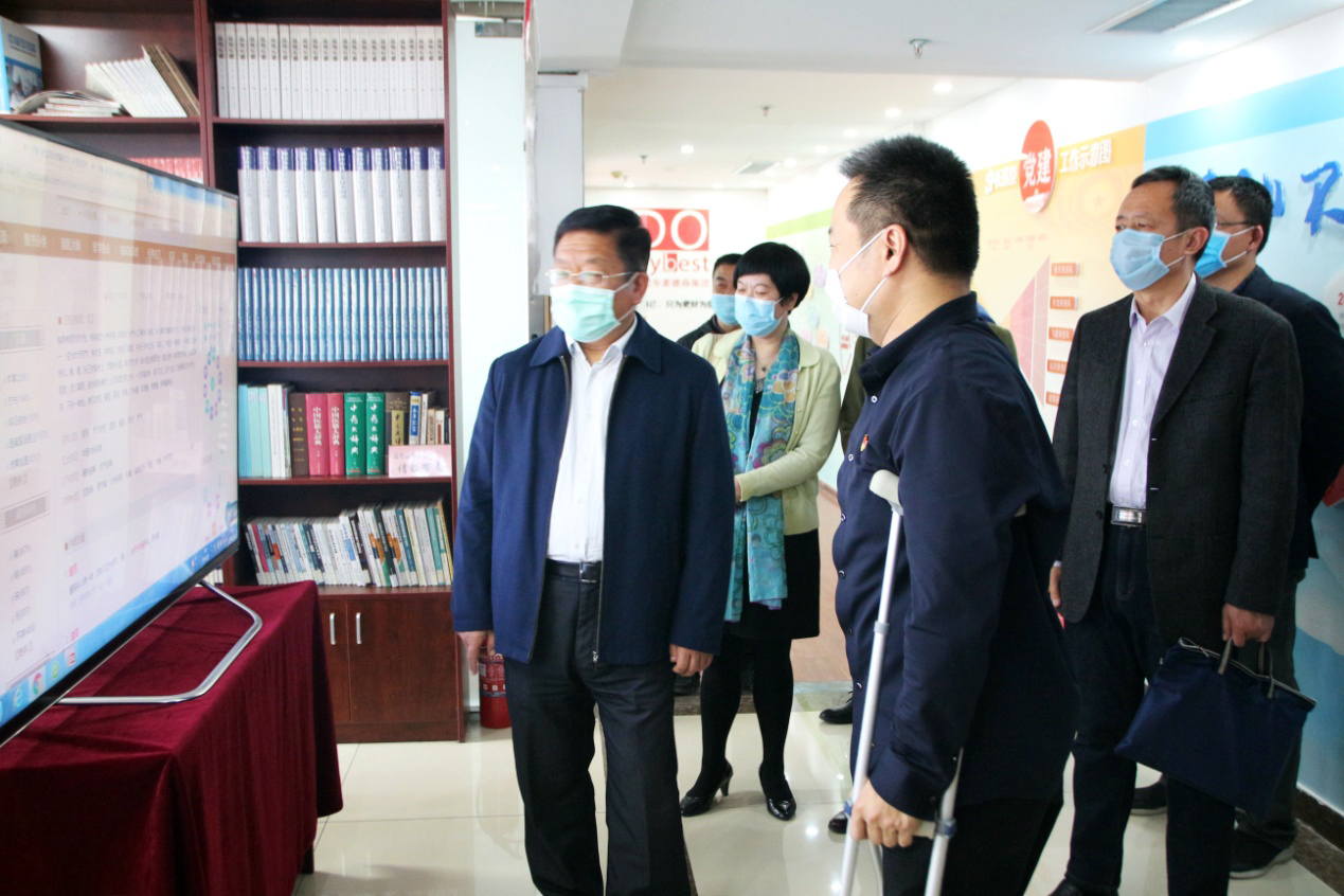 在王勇博士的带领下,王国顺部长一行先后视察了集团防疫期间“体温考勤点”、党建活动室、企业文化墙以及各业务职能部门办公区域,详细察看了企业“防疫工作记录”、党员突击队队员手抄党章、企业疫情防控领导小组下发的关于“疫情防控工作”的系列文件,并现场体验了“博览医书——医学知识信息服务系统”项目有关“疫疾”等词条的检索,对我集团疫情防控期间平稳推进复工复产工作给予充分肯定。