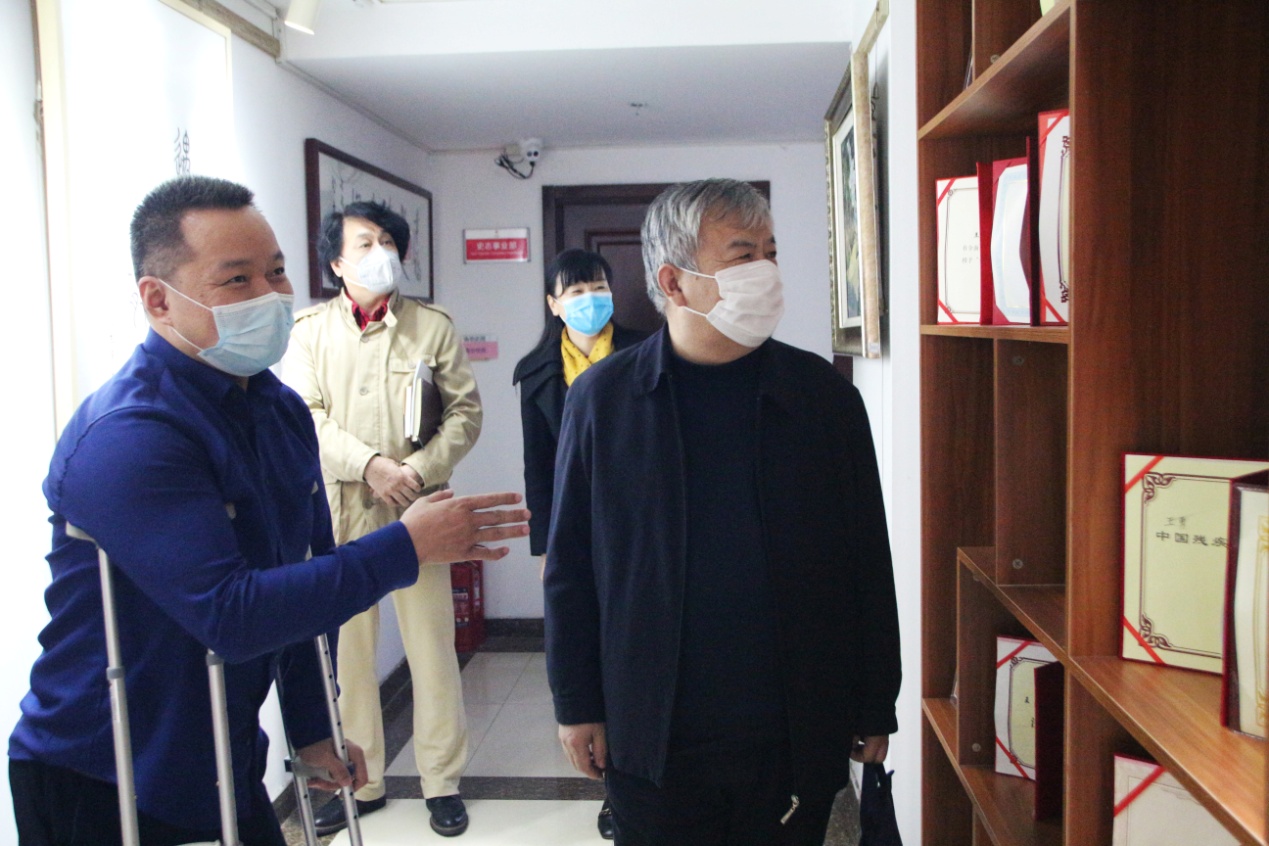 座谈会后,在王勇博士的带领下,曲国庆等领导一行饶有兴致地参观了我集团残疾人文化长廊、企业文化墙、党建活动室以及各业务职能部门办公区域。