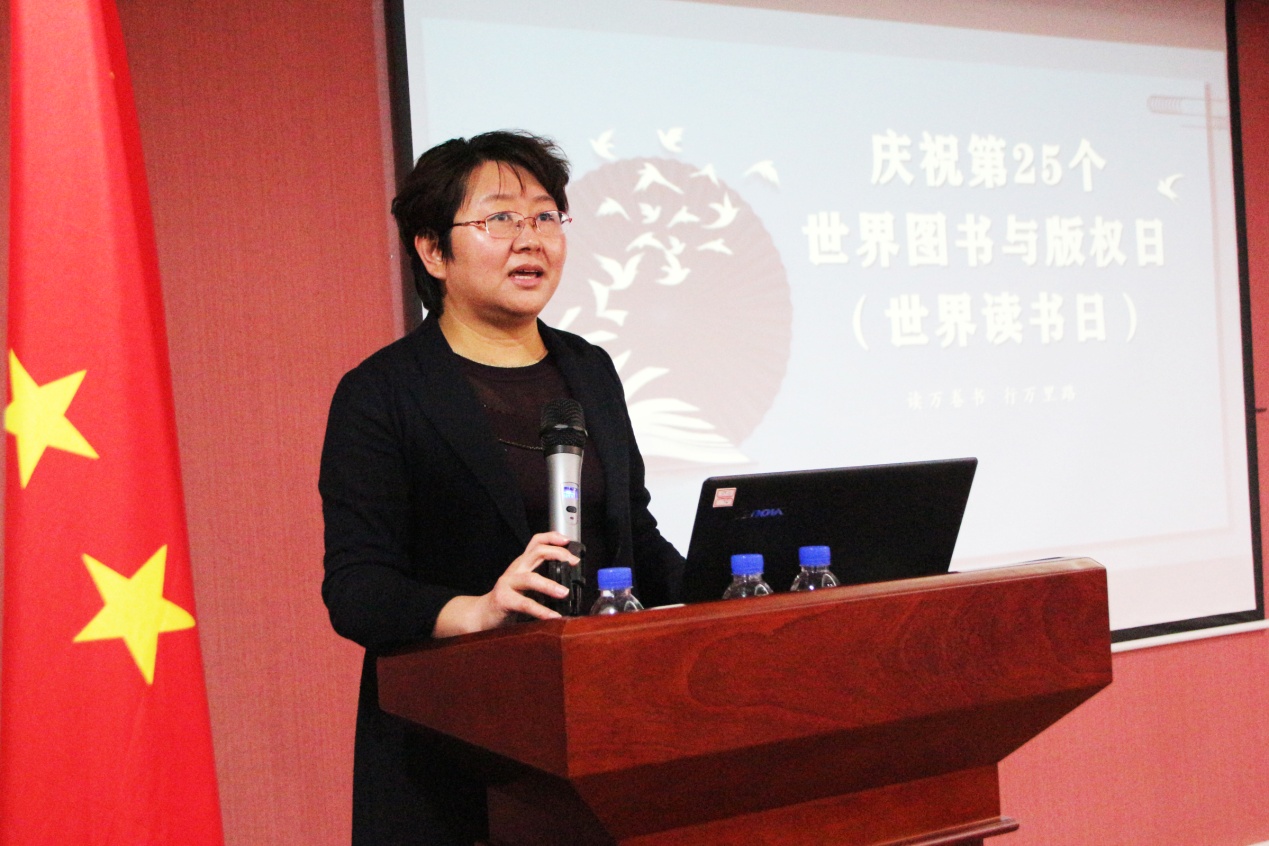 活动伊始,刘咏梅处长首先致辞,并就“版权知识”为大家做出详细介绍。她指出,尊重知识、崇尚阅读,是中华民族的优良传统;当前,在全国上下抗击新冠肺炎疫情的伟大战斗中,以“阅读”温暖人心、用“书香”提振精神、读书正合时宜。