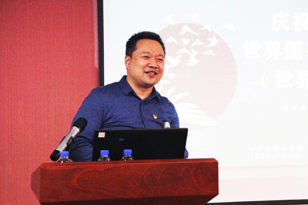 随后,集团党支部宣传委员杨斐向大家详细科普了“世界图书与版权日”的起源和发展;天龙突击队队员王金波、景天突击队队员刘景光作为“读书模范”的代表与大家分享了自己读书过程中的心得体会和快乐。