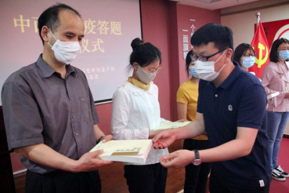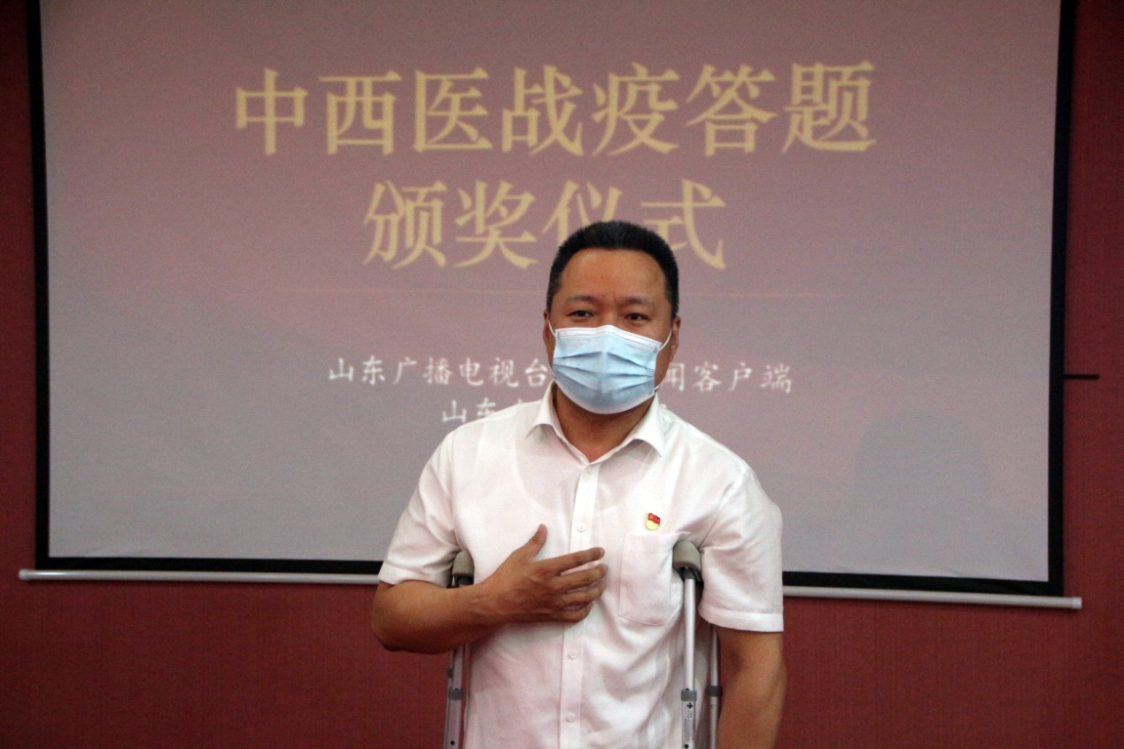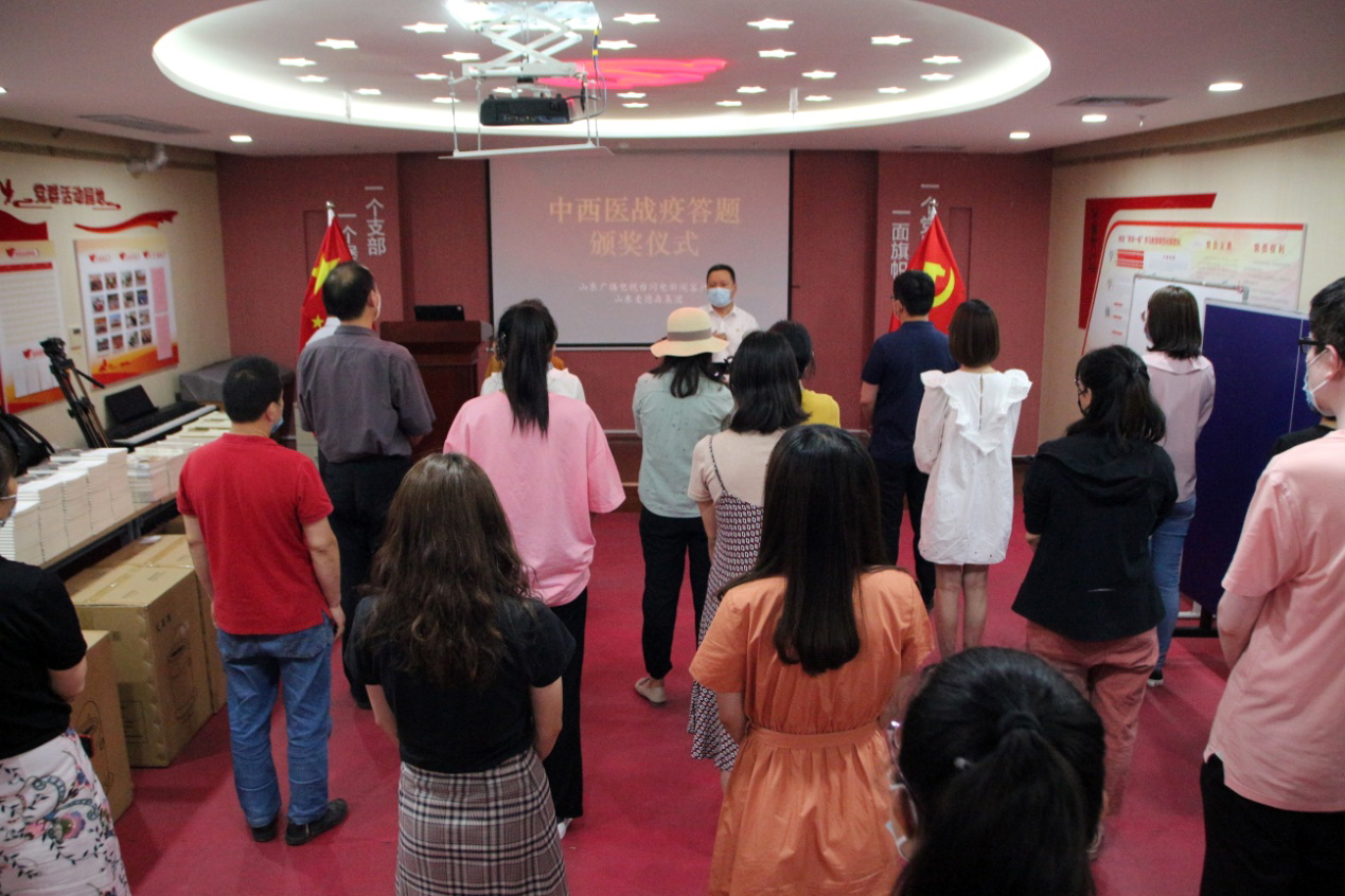 6月4日,“中西医结合战疫答题”颁奖仪式在我集团党群活动室隆重举行。山东广播电视台闪电新闻相关负责人出席颁奖仪式并为获奖人员颁奖,我集团党支部书记王勇博士出席颁奖仪式并对本次活动开展情况进行详细介绍,集团党支部副书记桑守正主持颁奖仪式,获奖人员代表、企业员工代表、媒体记者等参加活动。